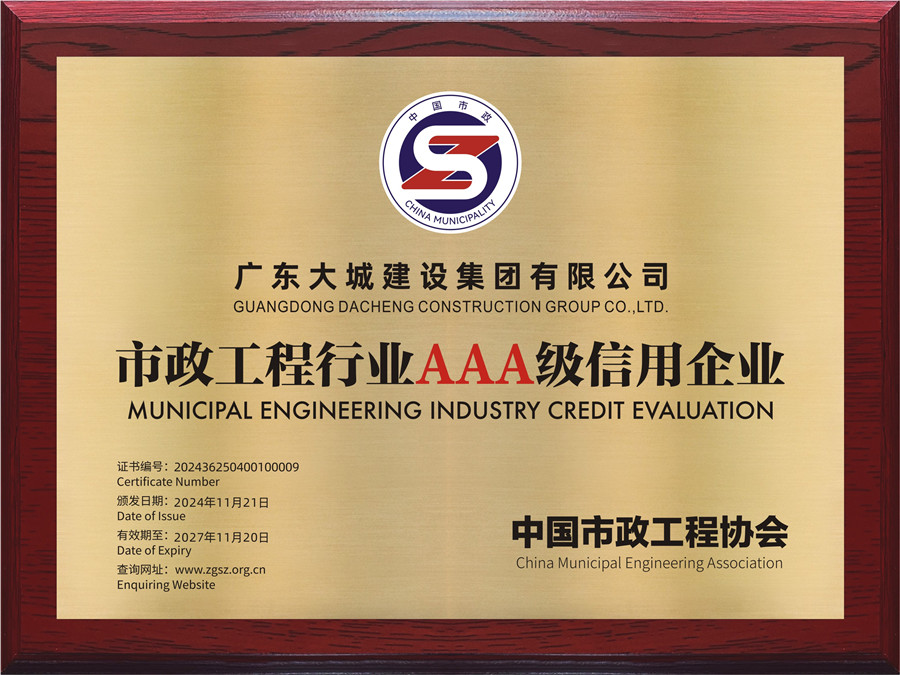 我司首次榮獲“中國市政工程行業AAA級信用企業”稱號